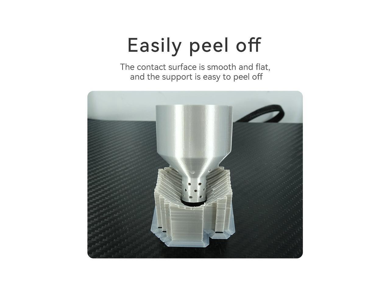 - Good PrintabilitySupport structure is easy to peel off, smooth and flat printed surface; High toughness, not easy to break; Keep all the advantages of PLA, easy to print, low shrinkage, no deformation; Printing speed is faster than ABS, PC, PA and other material.