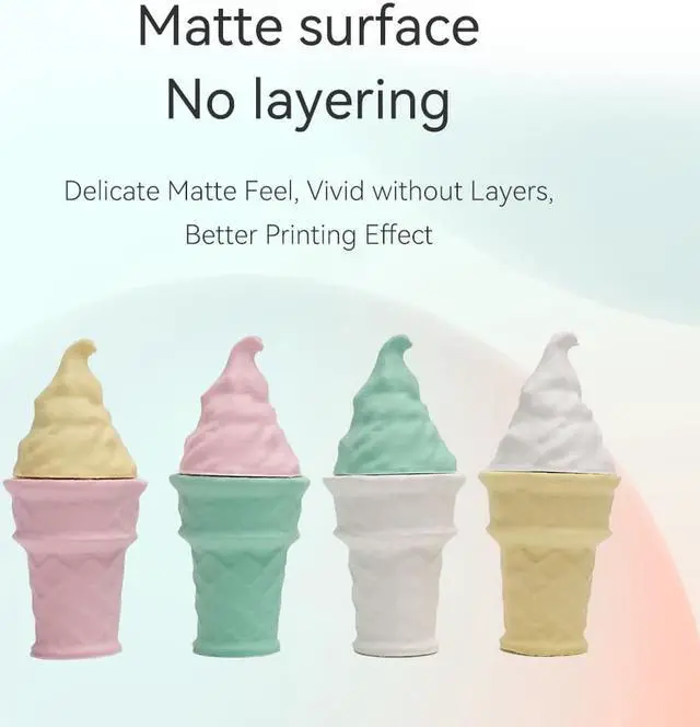 · Based on regular PLA, Matte PLA Refill has a matte surface effect with no obvious layer lines.It's not easy to break or crack. The support structure is easy to peel off and the printed surface is not scratched.