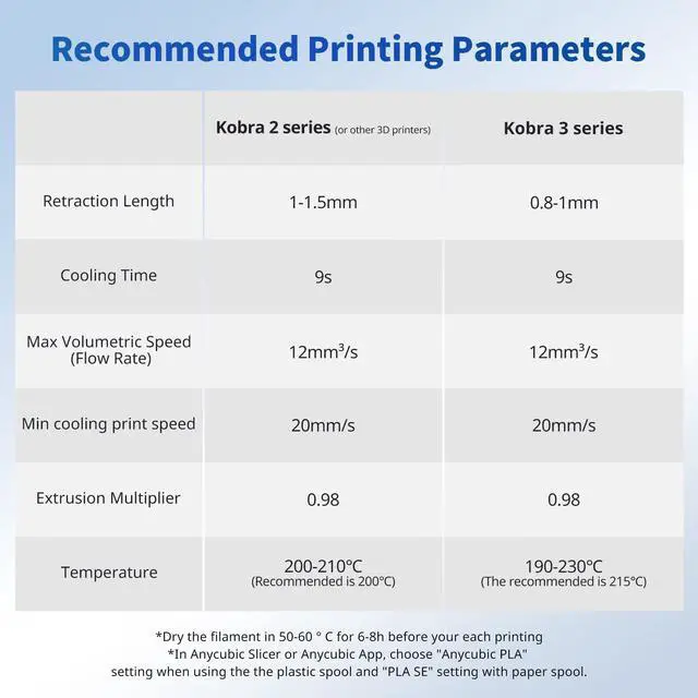 • & Anycubic 3D Printer PLA filament of 1.75mm diameter, minimum dimensional tolerance +/- 0.02mm, which makes filament outflow smoother, came out homogeneous. The low shrinkage and stable printing dimensions make the fusion between the layers very good to obtain an even better-bridging result. You don't worry the diameter changes a lot then the feed rate is disrupted with thicker and thinner layers at all