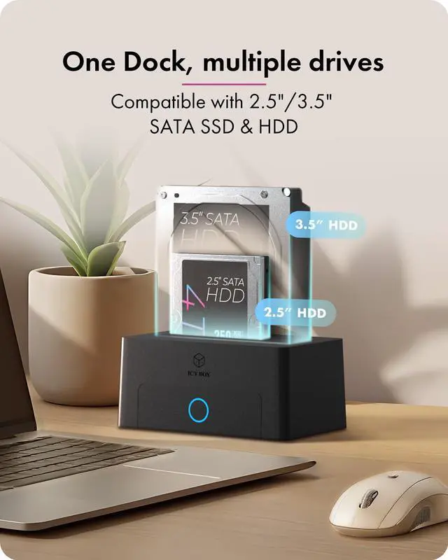 - Supports 2.5" and 3.5" SATA HDD/SSDs