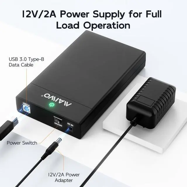 External Hard Drive Enclosure for 3.5 2.5 Inch SATA HDD SSD, USB 3.0 to SATA Converter Case Reader with 12V 2A Power Adapter, Tool-Free, Support 24TB HDD & UASP