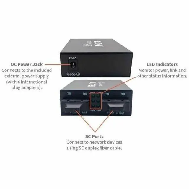 Customizes Your Network Extension over Fiber Optic CableThis network mode converter works with a variety of SC cables to convert a multimode fiber signal to a singlemode fiber optic signal and extend it to a second network device. The mode conversion allows your network connection to reach hubs, switches and other devices located up to 10 kilometers ( 6.2 miles) away. The N785-MDC-1SCSC is ideal for network engineers migrating toward higher-density data centers. LEDs Indicate Installation Performance and Diagnostic FunctionsEasy-to-read LEDs on the side of the mode converter indicate essential status information, including network speed and connection, signal diagnostics and unit power.