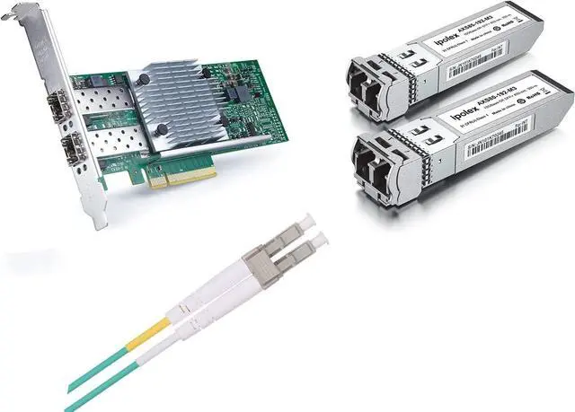 What You Get: 1*10G SFP+ Network Card for Intel X520-DA2, 2*10GBase-SR SFP+ Transceiver, 1*OM3 LC to LC Fiber Patch Cable(10ft).