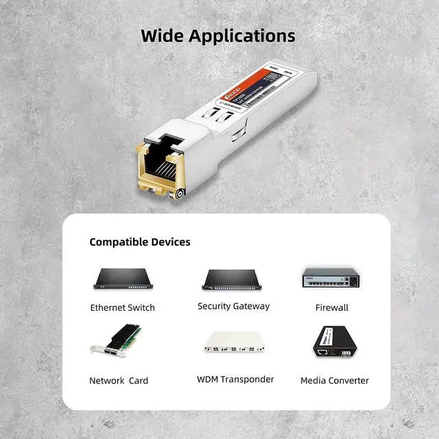 . Connects a network switch, server, or NIC with SFP or SFP+ to RJ45 Gigabit Ethernet network for Network Attached Storage (NAS), Storage Area Network (SAN), and High Performance Computing (HPC) applications