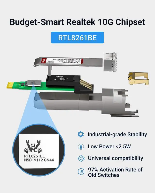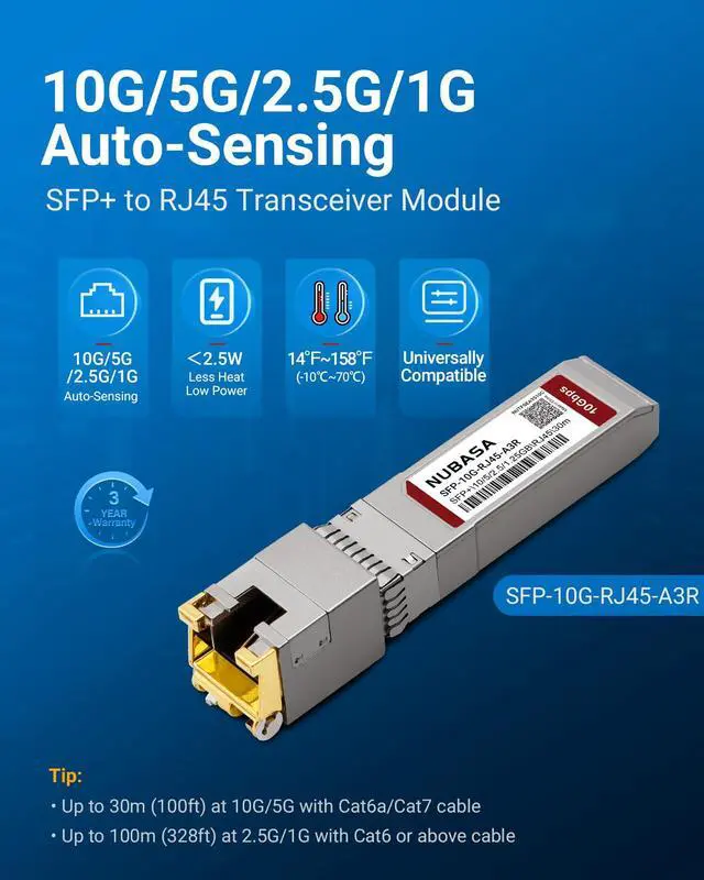 ASIN: B0FLKHXQ3D (Model: SFP-10G-RJ45-A3R) YES to Auto-Sensing speeds (10G?5G?2.5G?1G). Not for obsolete 100M/10M devices.