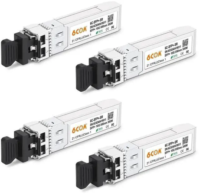 10GBASE-SR SFP+ transceiver module for MMF, 850nm wavelength, LC duplex connector.