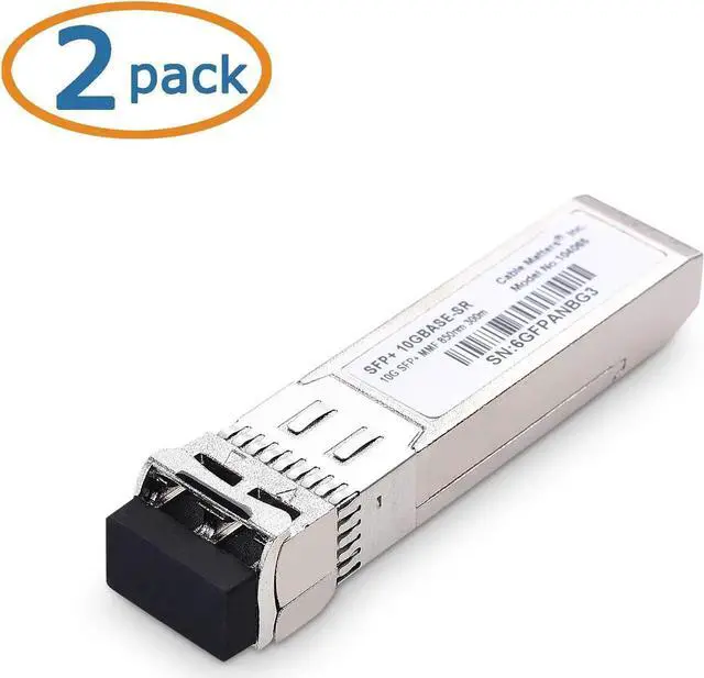 Cable Matters 2-Pack 10GBASE-SR SFP+ to LC Multi Mode 10G Fiber Transceiver Modular for Cisco, Ubiquiti, TP-Link, Huawei, Mikrotik, Netgear, and Supermicro Equipment