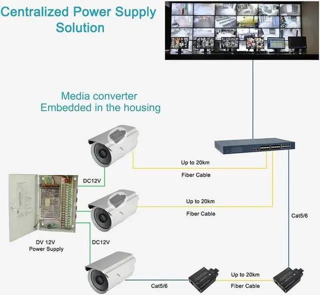 5~15V DC Input This Ethernet media converter supports wide range voltage input, not only 5V input like other converters. You can use 9/12V centralized DC power supply when AC power is not available
