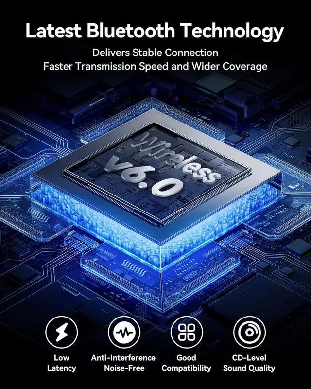 Upgraded Bluetooth 6.0: Equipped with an upgraded Bluetooth 6.0 chip, enabling faster data transmission and a more stable connection. The enhanced signal receiving circuit can quickly connect within a 66-foot range (without obstacles), providing a stable and high-quality audio experience, and supporting simultaneous connection to two mobile phones.