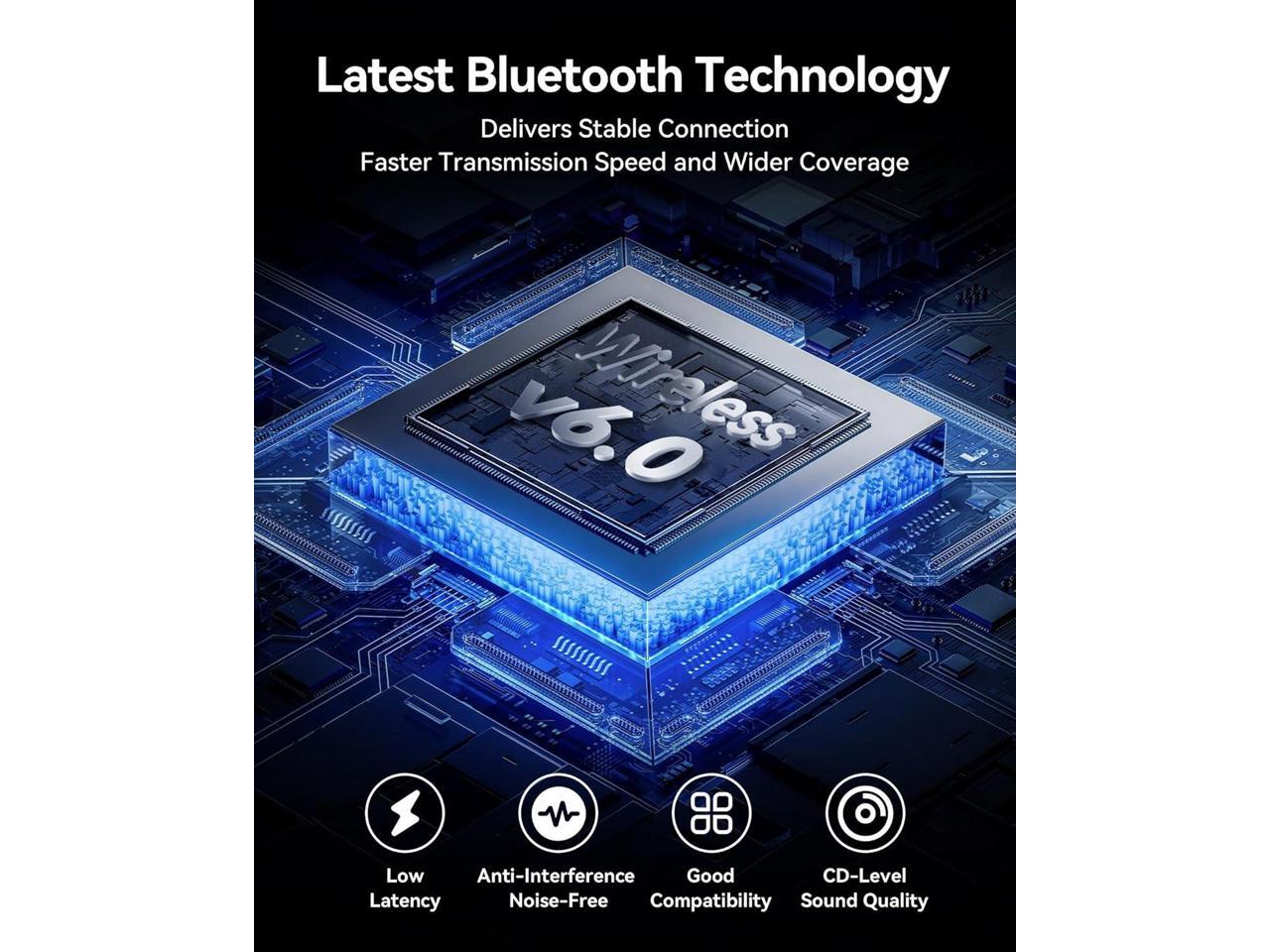 Upgraded Bluetooth 6.0: Equipped with an upgraded Bluetooth 6.0 chip, enabling faster data transmission and a more stable connection. The enhanced signal receiving circuit can quickly connect within a 66-foot range (without obstacles), providing a stable and high-quality audio experience, and supporting simultaneous connection to two mobile phones.