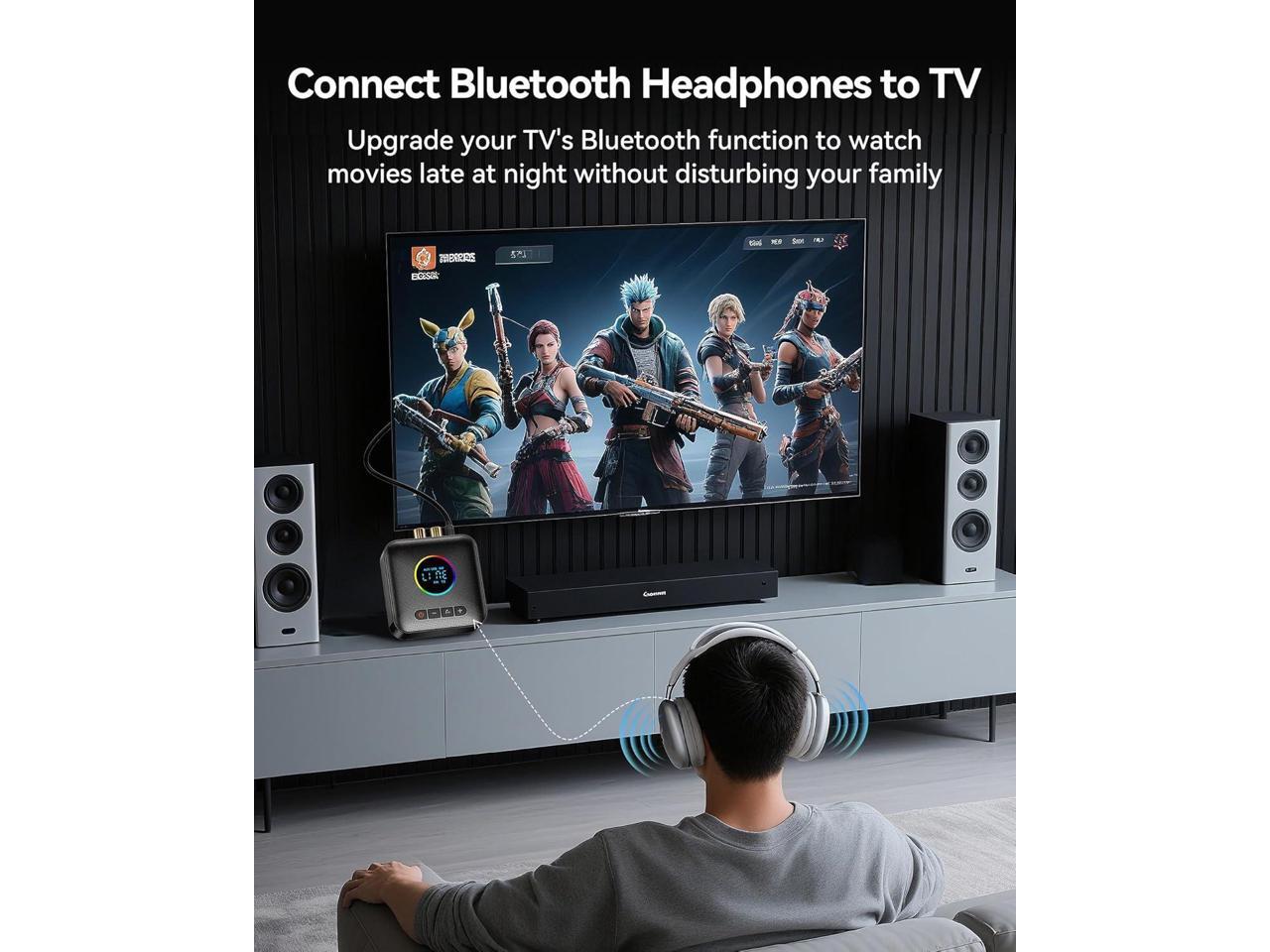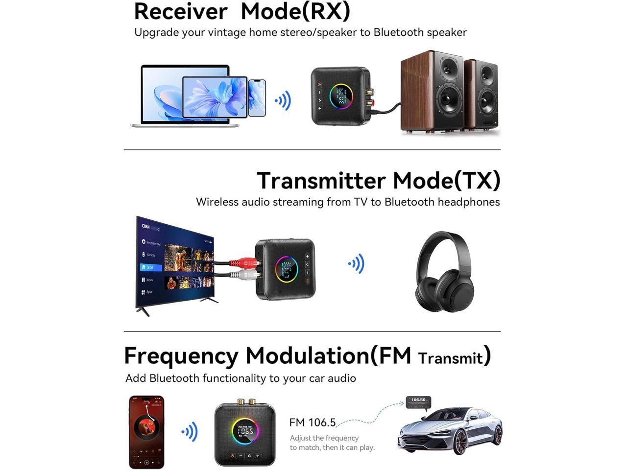 Hitoor Bluetooth 6.0 Transmitter Receiver for TV,3 in 1 Bluetooth Adapter HiFi Audio Receiver FM Transmitter for Home Stereo/Speakers with LED Display,3.5mm AUX,RCA Interface,Supports USB Flash Driive