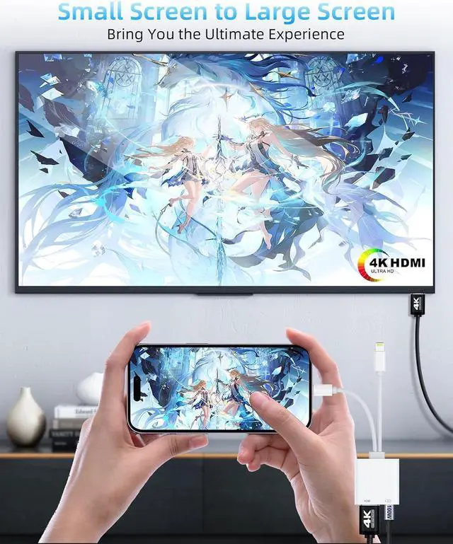 Iphone to hdmi adapter for tv Supports resolutions up to 4K UHD (3840x2160@60Hz) and uses a thick core of 100% copper for fast and stable signal transmission