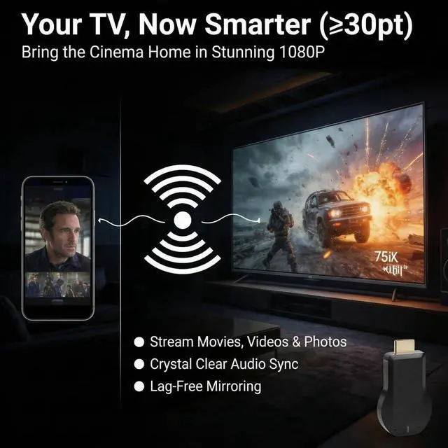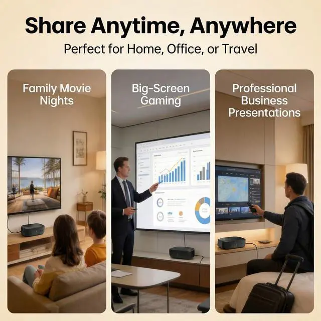 Perfect for movie nights with family, travel entertainment, or work presentations. Mirror your phone or laptop wirelessly and bring your content to life on the big screen.