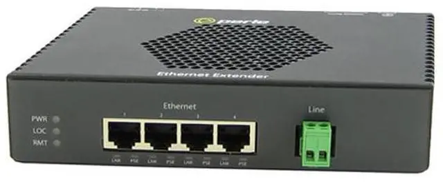 Perle 06003760 eX-4S110-TB-XT - Fast Ethernet Industrial Temperature Ethernet Extender - 4 port 10/100Base-TX (RJ-45). 2-pin Te