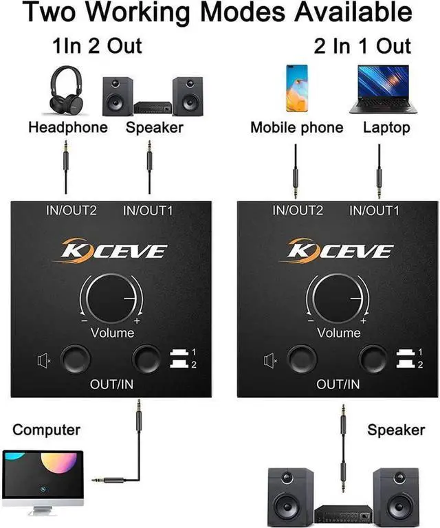 [2 in 1 out ] Input and output are bidirectional, this Mini 3.5 mm Audio selector designed for customers having several audio sources and outputs.