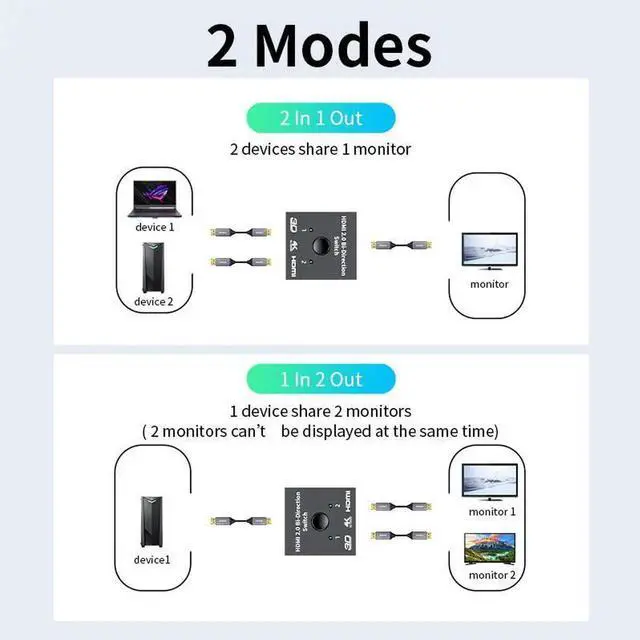 Feature 1:1 x2/2x1 Adapter HDMI-compatible Switcher 2 in1