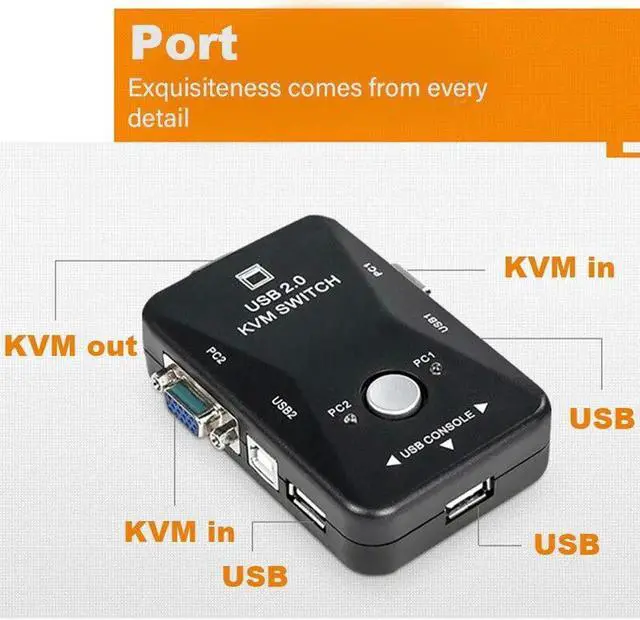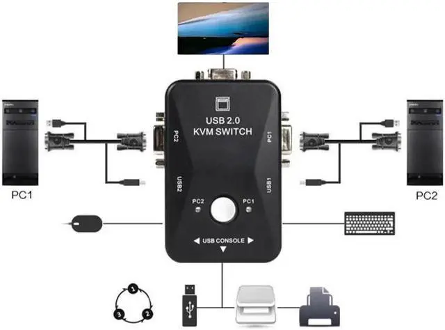 • USB KVM Switcher 2 Port VGA SVGA D-Sub Switch Box USB 2.0 KVM Mouse Keyboard Vga Splitter Box Sharing Converter for Monitor PC
