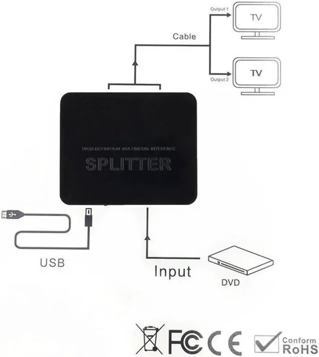 HDMI-Compatible Splitter 1X2: HDMI-Compatible Splitter 1 into 2 out
