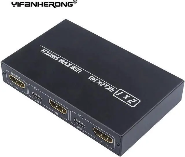 • USB KVM Switch USB 2.0 Switcher HDMI-compatible KVM Switch 2 In 1 Out 4K for 2 PC Sharing Keyboard and Mouse EDID / HDCP Printer
