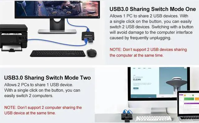 • USB 3.0 Switch Selector KVM Switch 5GBPS 2 in 1 Out USB Switch USB 3.0 Two-Way Sharer for Printer Keyboard Mouse Sharing