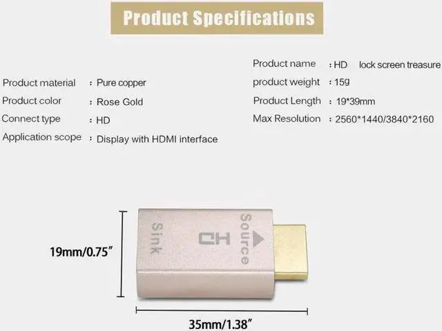• Lock Screen Signal Holder HDMI-compatible 2.0 KVM Virtual Adapter EDID Dummy Plug Male-Fe 3840X2160 for Display Emulator 95AF