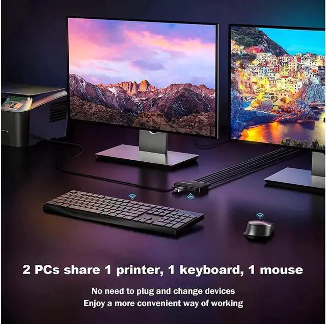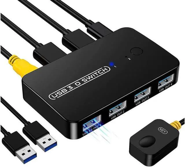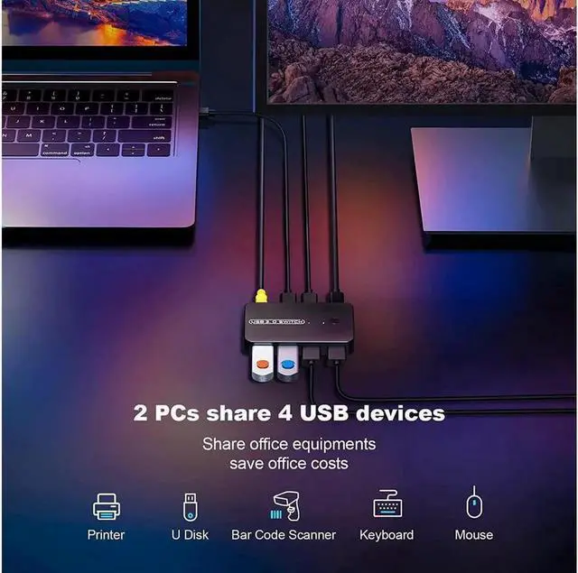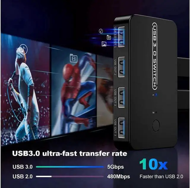 [Multiple Device Sharing] Our 3.0 USB switch allows 2 computers to share 4 USB 3.0 peripheral devices, such as printers, keyboards, mouse, U disks, scanners etc. Greatly help you stay away from the trouble of frequent plugging and unplugging.