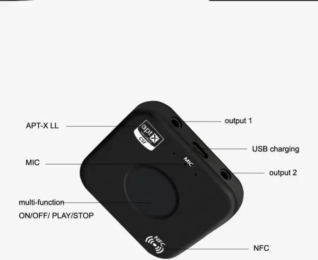 • Bluetooth Transmitter and Receiver Adapter 4.2 Audio APT-X NFC CVC6.0 Built-in Microphone AUX Out for Phones iPad PC TV