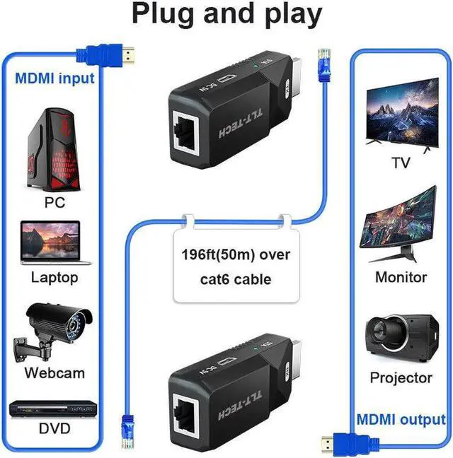 • 2022 New MINI HDMI extender over cat6/cat5e cable up to 50M 165ft full HD1080P supported HDMI extender cable amplifier for HDTV
