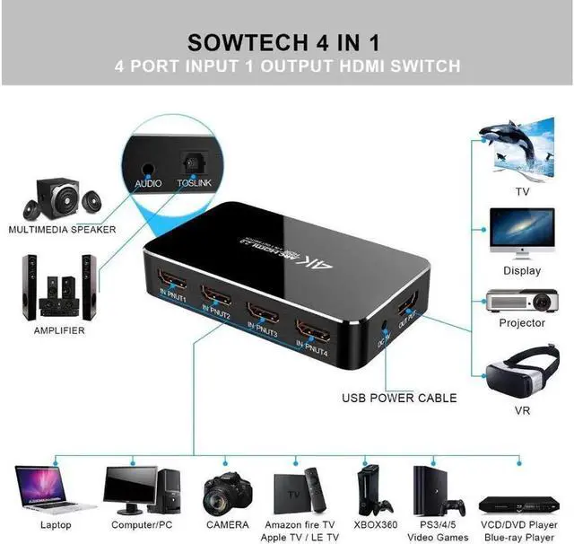 Support Ultra HD Resolution: This HDMI-compatible Switch support most resolution, such as HDMI-compatible V 2.0 and HDCP V 1.4 for 4K x 2K@60Hz/Full HD 1080P/Full 3D 1080P/HD o/HDCP/480P/576P/720P/1080P/1080p 3D/4K@60Hz
