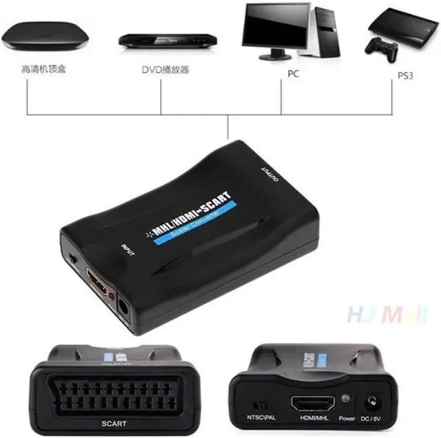 • 1080P HDMI To SCART Composite Video Stereo Audio Converter Adapter For HD TV DVD STB with Power adapter US/EU/UK/AU Plug