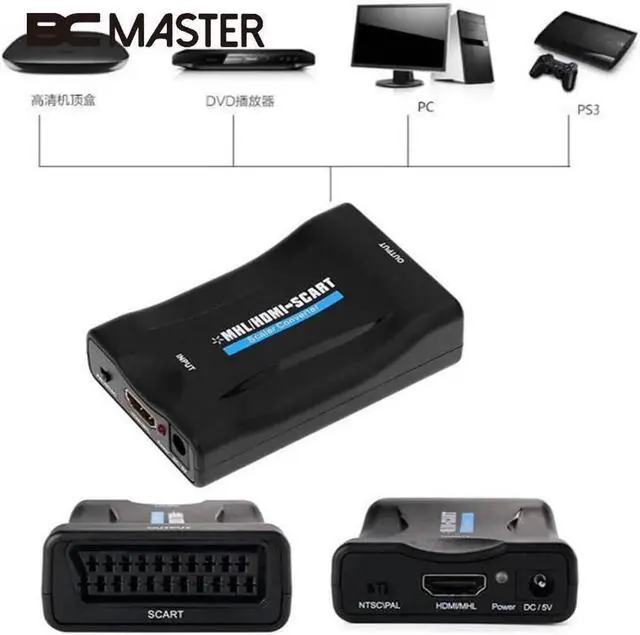 • 1080P EU/UK Plug HDMI To SCART Video Stereo Audio Converter Adapter For Sky Box HD TV DVD STB with Power adapter