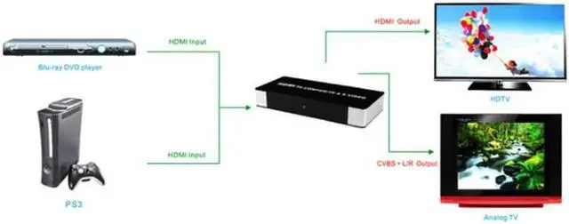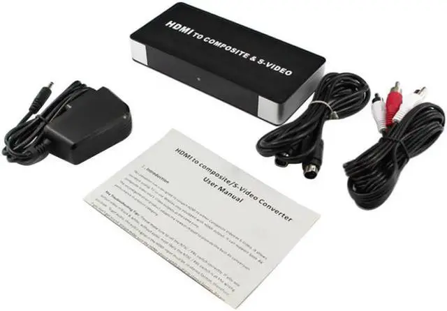 HDMI to TV Composite RCA AV + S Video Converter Include AV & S Video Cables + AC Power Adapter