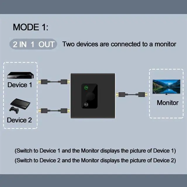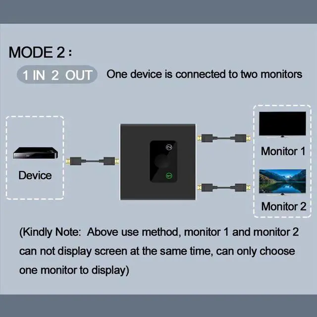 • Switch,HDMI 2.0 Splitter 2 X 1/1 X 2. No External Power Required, Aluminum Alloy,60Hz,Support 4K 3D HD 1080P KVM Switcher