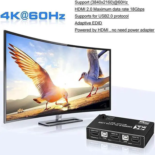 UHD 4K Visual Enjoyment: The kvm switch supports HDMI 2.0 and standard HDCP 2.2. Support max resolution up to 4K@60Hz, also support 1080P or lower resolution, makes image display more exquisite and realistic.