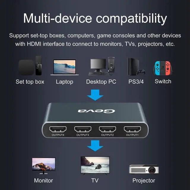 • 1x4 HDMI-compatible Splitter 1 in 4 Out 4K@60hz Splitter 1 Port to 4 Display Duplicate/Mirror HDCP 18Gbps for PS4 Xbox Switch
