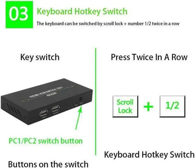 Support to use a set of mouse keyboard and display through keys or keyboard hotkey command free switching