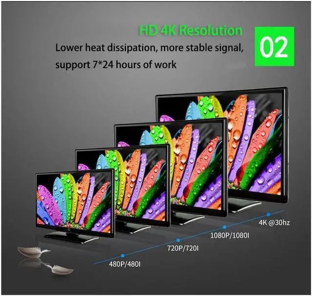 Support the highest resolution up to 3840* 2160/30hz, 2540* 1440@60hz, 1080P and downward compatibility