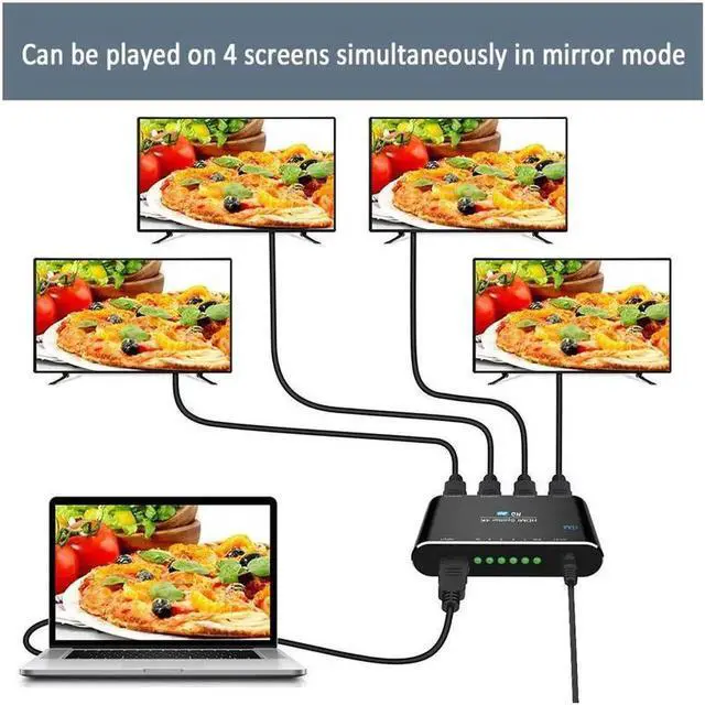 1. Simultaneously connect 4 HDMI displays to 1 video signal source for simultaneous display.