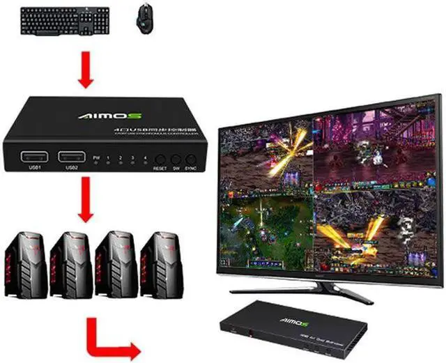 • 4 Ports USB KVM Switcher Splitter Box for 4 PC Switch Splitter Sharing Printer Keyboard Mouse USB PC Switch Box Video Display