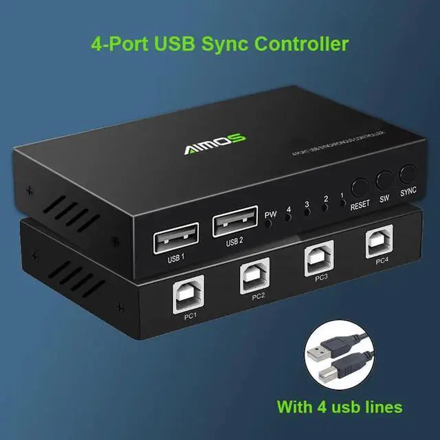 4 Ports USB KVM Switcher Splitter Box for 4 PC Switch Splitter Sharing Printer Keyboard Mouse USB PC Switch Box Video Display