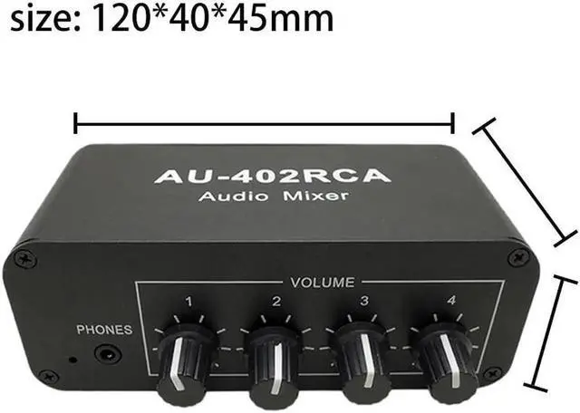 • Multi-Source RCA Mixer Stereo Audio Reverberator Audio Switch Switcher 4 Input 2 Output Driver Headphone Volume Control