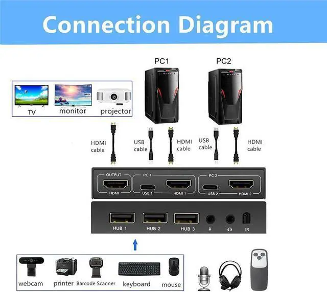 • 2.0 KVM switch With Audio 2 Ports 2 in 1 out Sharing 2 USB Devices Switch Switcher For PC Computer Printer Keyboard Mouse