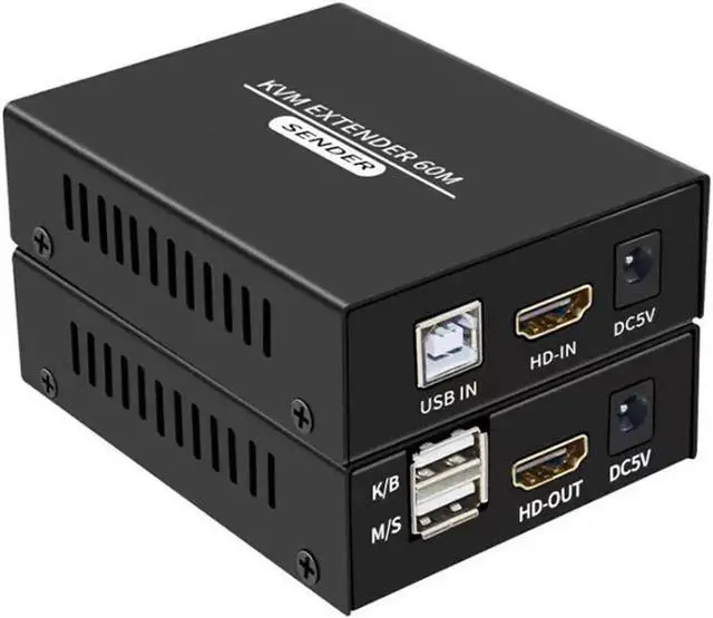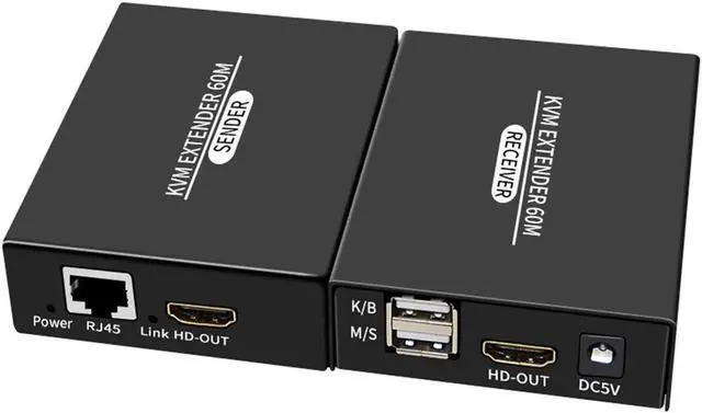 • Extender 60M 1080P HDMI-compatible Over cat5e/6 Ethernet RJ45 LAN Cable USB-A Keyboard Mouse KVM Video Extend TX RX Adapter