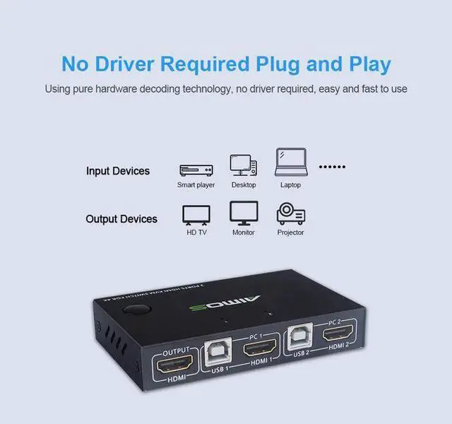 • HDMI KVM Switcher 4K 2 in 1 out USB KVM Switcher Keyboard Mouse USB Shared Display Synchronization Controller KVM Switch