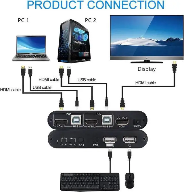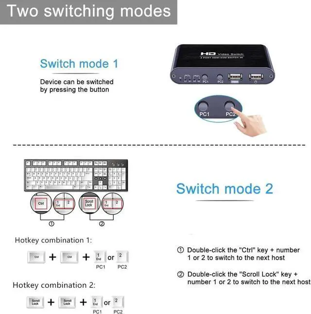• 4Kx2K@30Hz HDMI KVM Switcher Box 2 In 1 out for your monitor support hot plug ,YUV 4:4:4 and 3D