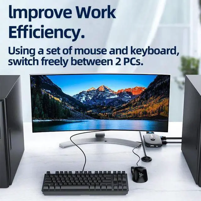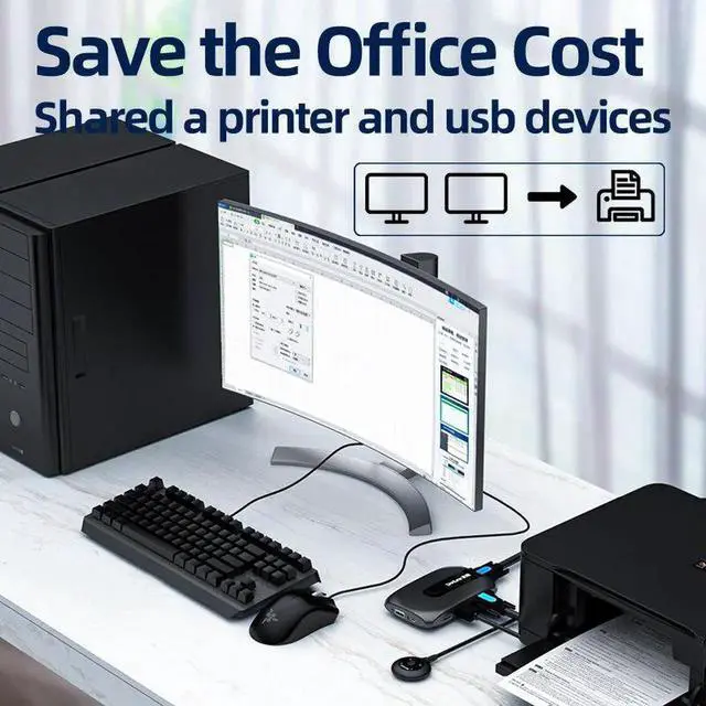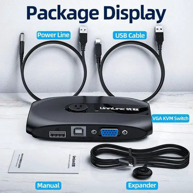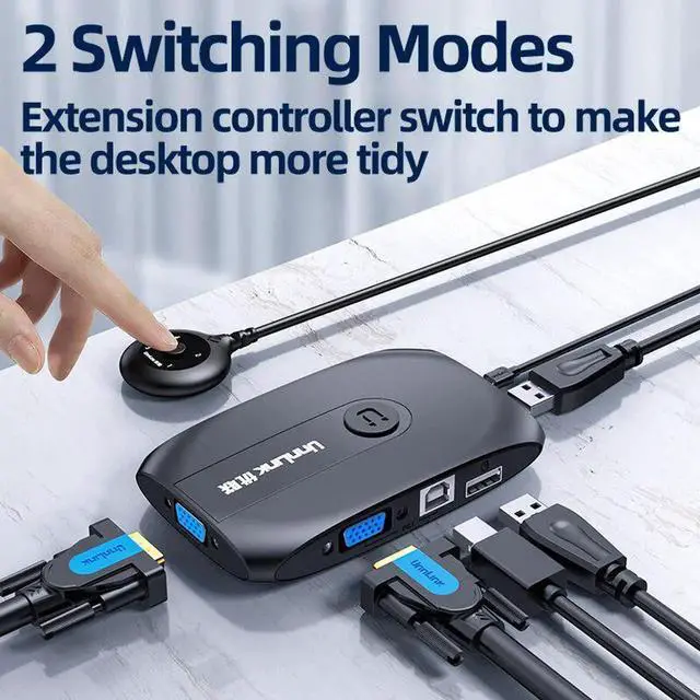 • 1080P VGA KVM Switch USB KVM Switcher Splitter With Extender for 2 PCS Laptop Share Mouse Keyboard Monitor Printer