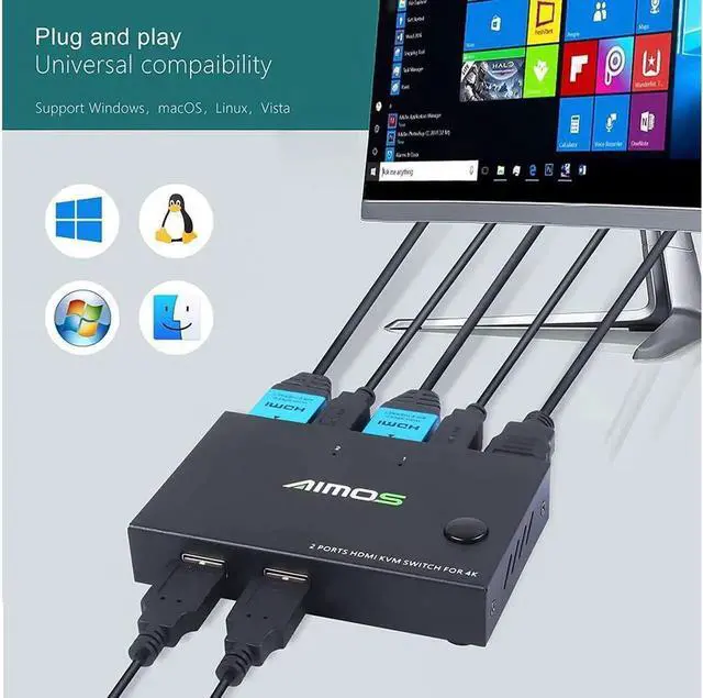 [Good Compatibility] Plug and play, this KVM switch works with great compatibility, driver-free for Windows 10/8/ 8.1 /7/Vista/XP and Mac OS, Linux, and Chrome OS.