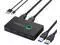 [One-Button-Switch & LED Lgiht Design] With the LED light and one button switch design, you can easily switch between 2 computers by click on the button with the LED light (Green or Blue), which makes it easy to tell which computer you have it selected for.