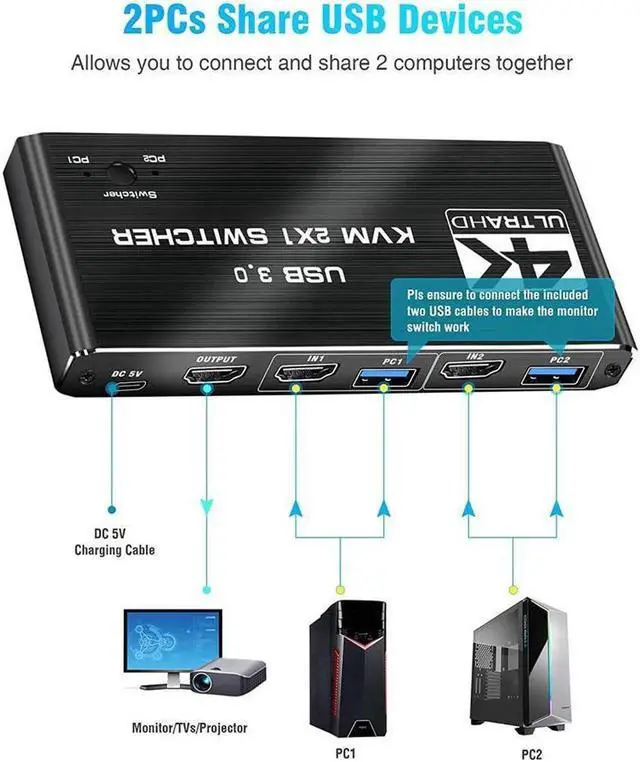 [USB KVM Switch HDMI] Allow a one-click swap between 2 computers to share 4 USB 3.0 peripherals and 1 HD monitor without constantly changing cables or setting up complex shareware. Make your work and life easier and more efficient!