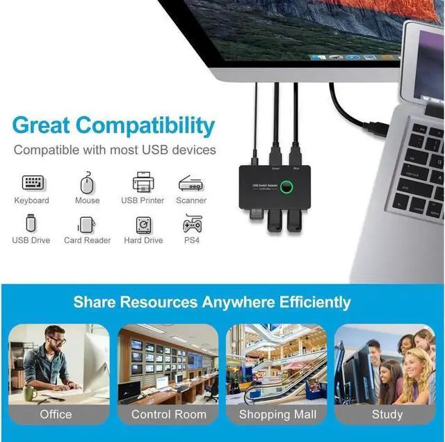 [Efficient KVM Switches] Supports up to 5Gb/s (10 times faster than USB 2.0 ), to work flawlessly with high-bandwidth USB 3.0 devices, such as external hard disks, high-resolution webcams and more, and is backward compatible with USB 2.0 devices.
